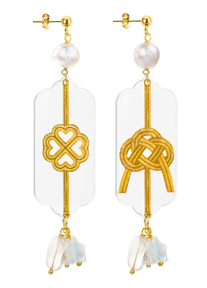 Four-leaf Clover And Knot Earrings In Clear Plexiglass And Pearl