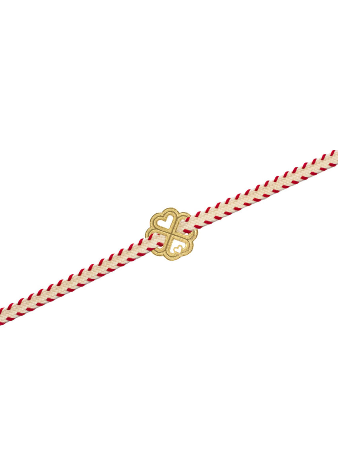 Bracciale Quadrifoglio Tessuto Bianco E Rosso