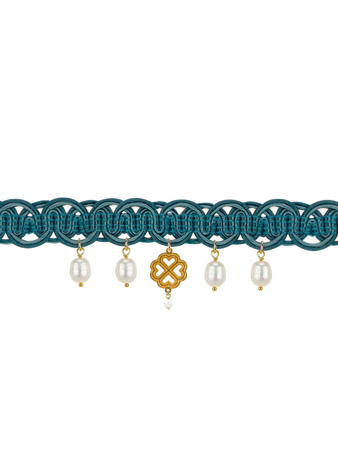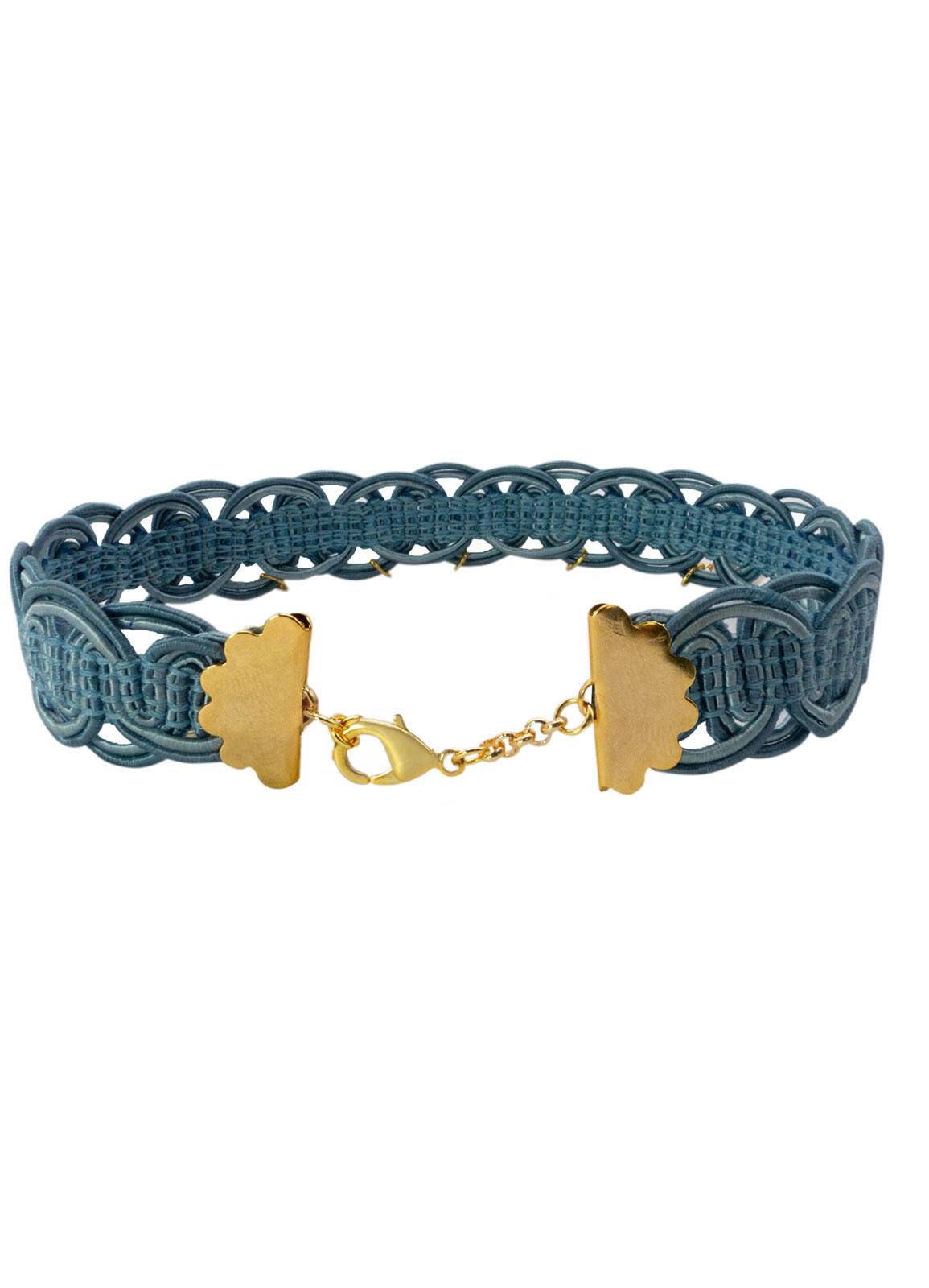 Collana in alluminio galvanizzato oro e pietre naturali. Lunghezza 35 cm. Altezza Collarino 2 cm. Chiusura con moschettone. Made in Italy