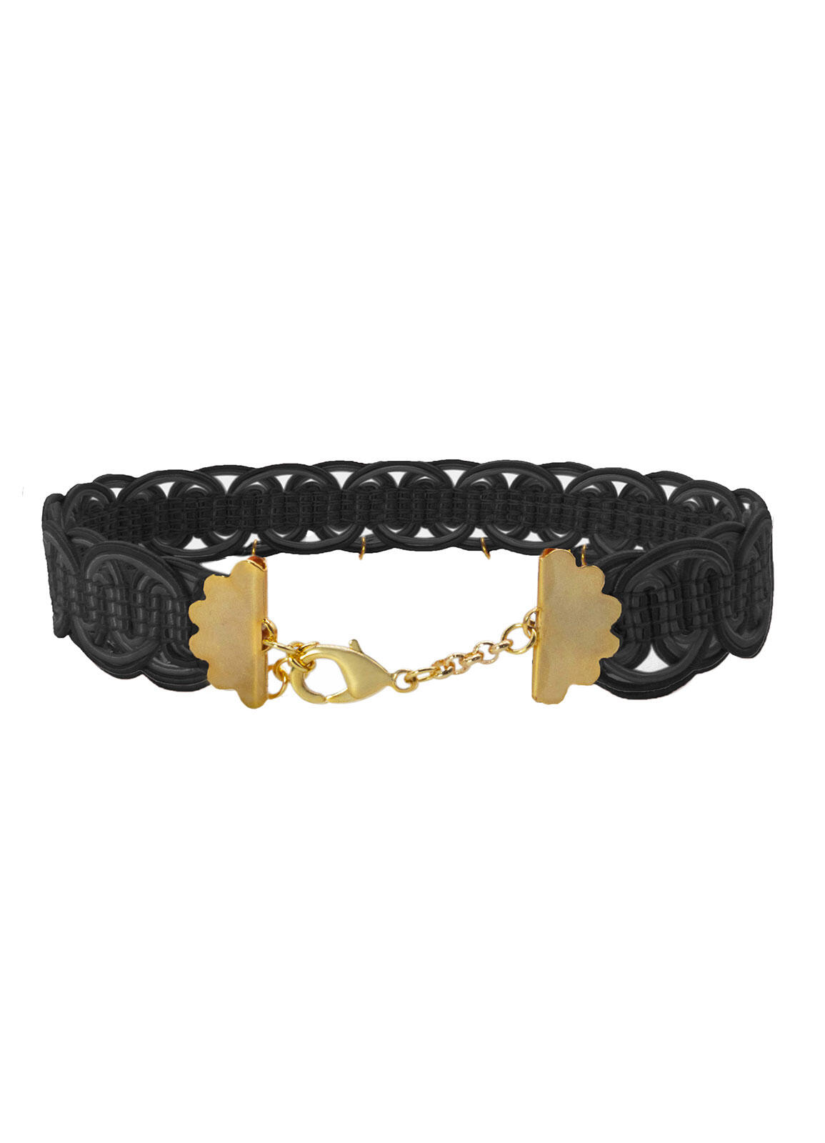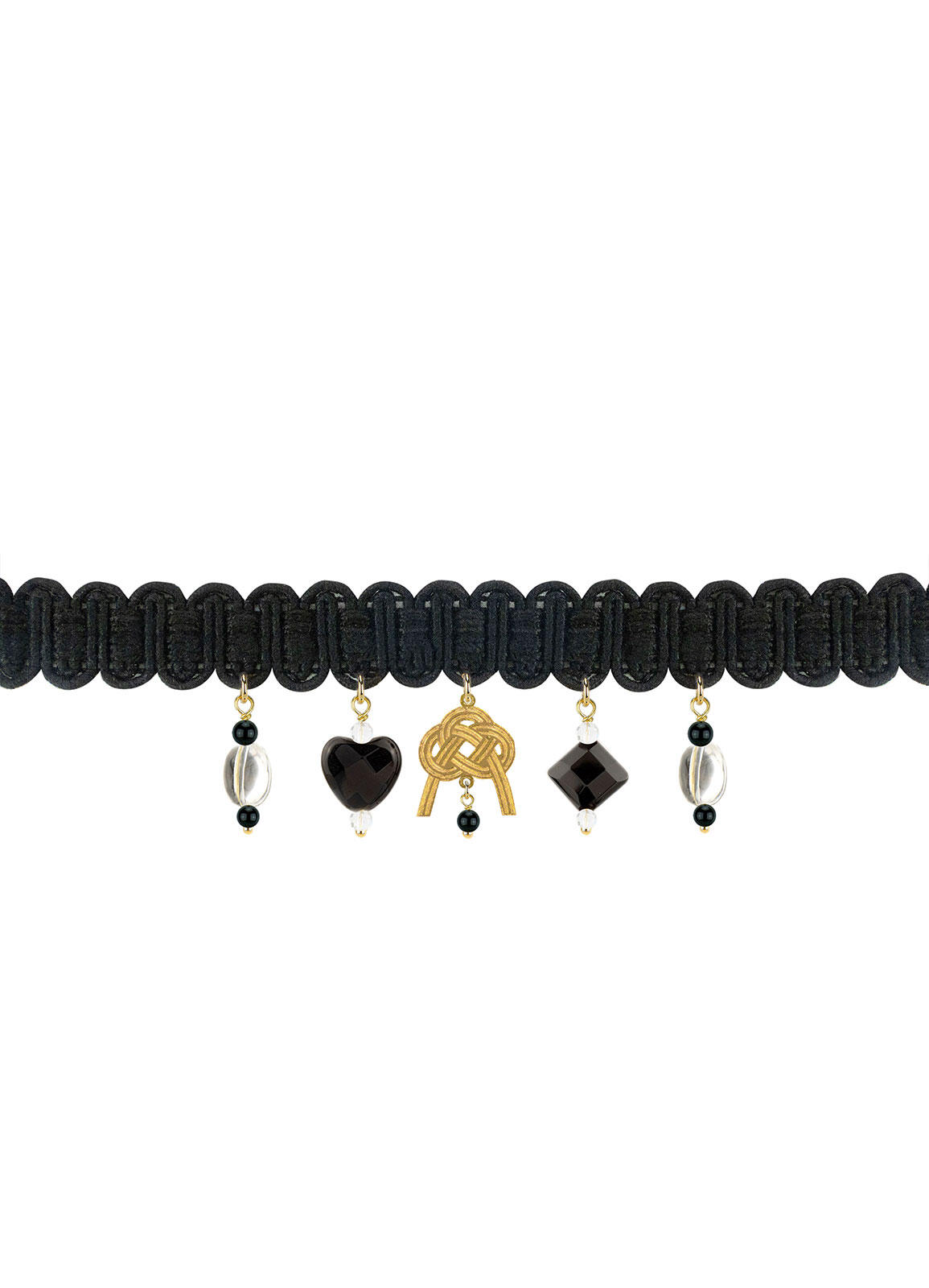 Collana in alluminio galvanizzato oro e pietre naturali. Lunghezza 35 cm. Altezza Collarino 1,7 cm. Chiusura con moschettone. Made in Italy
