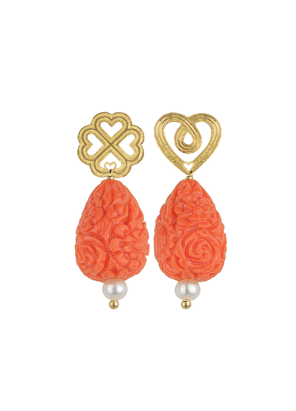 Orecchini Cuore Quadrifoglio Gocce Corallo