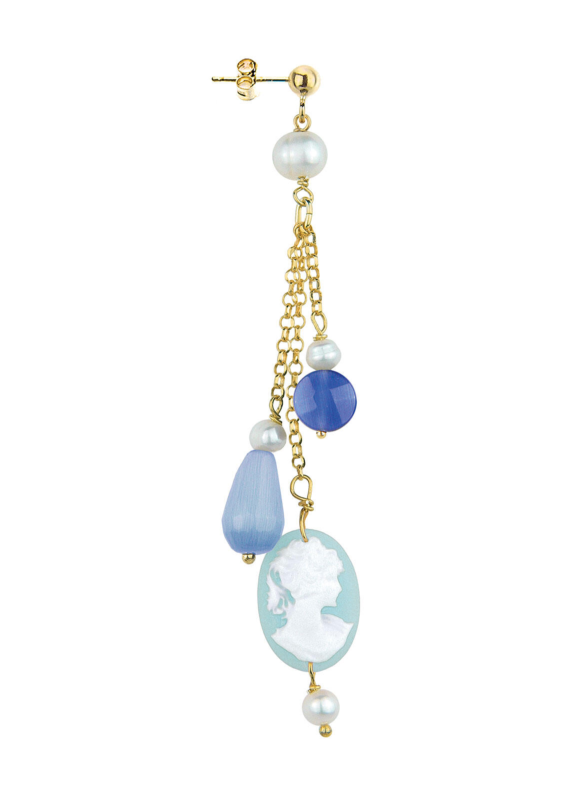 Orecchino Cammeo Celeste Ciuffo Corto Blu