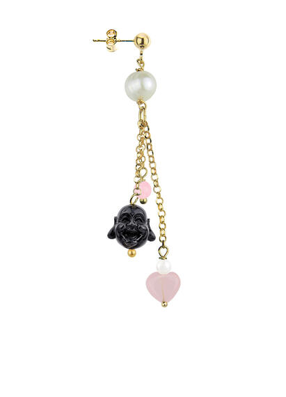 Orecchino Ciuffo Corto Buddha Nero Rosa