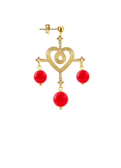 Orecchino singolo in ottone galvanizzato oro e pietre naturali. Lunghezza 5 cm. Made in Italy