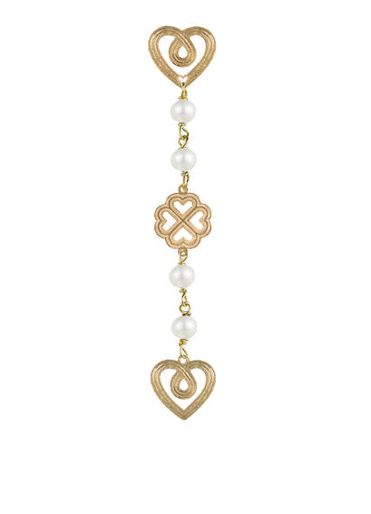 Orecchino singolo in ottone galvanizzato oro e pietre naturali. Lunghezza 8 cm. Made in Italy