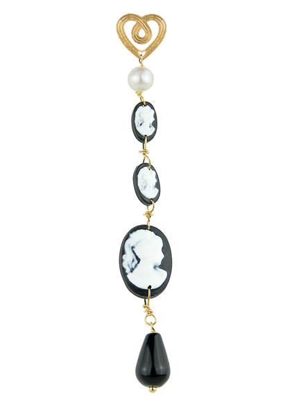 Orecchino singolo in ottone galvanizzato oro e pietre naturali. Lunghezza 10,5 cm. Made in Italy