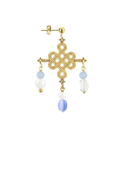 Orecchino singolo in ottone galvanizzato oro e pietre naturali. Lunghezza 5 cm. Made in Italy