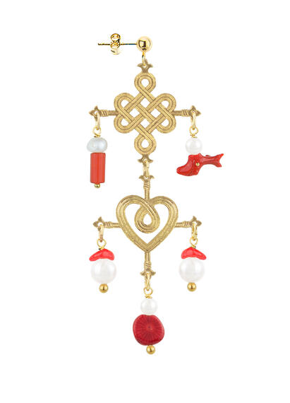 Orecchino Infinito Cuore Doppia Croce Corallo