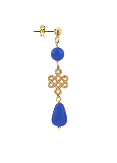 Orecchino singolo in ottone galvanizzato oro e pietre naturali. Lunghezza 4 cm. Made in Italy