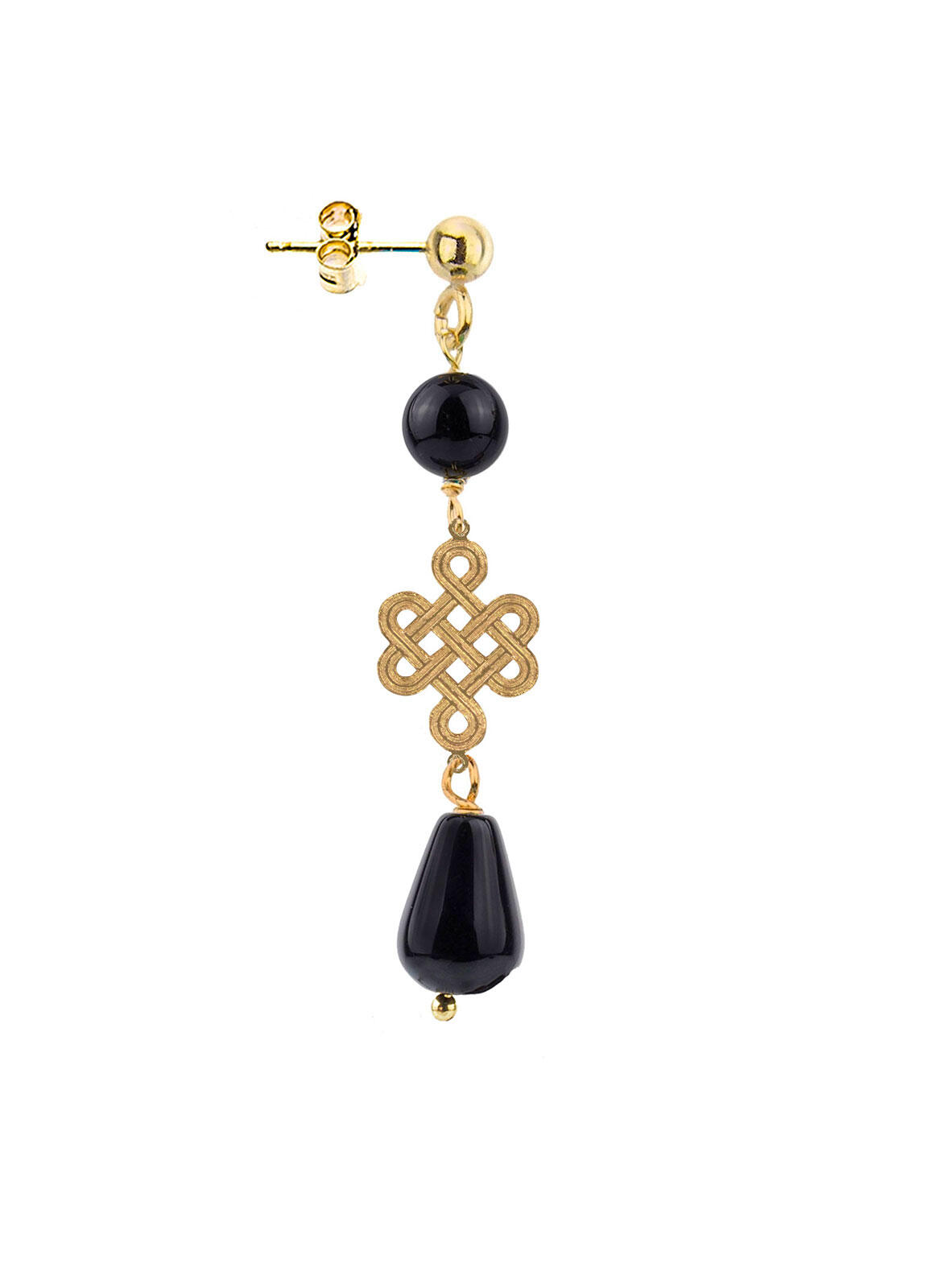 Orecchino singolo in ottone galvanizzato oro e pietre naturali. Lunghezza 4 cm. Made in Italy