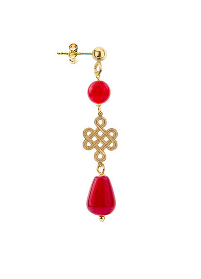 Orecchino singolo in ottone galvanizzato oro e pietre naturali. Lunghezza 4 cm. Made in Italy