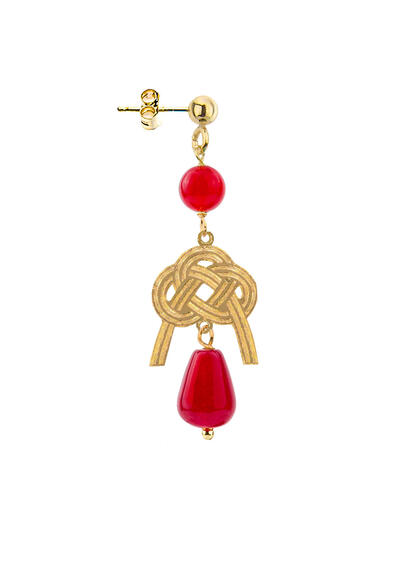 Orecchino singolo in ottone galvanizzato oro e pietre naturali. Lunghezza 4 cm. Made in Italy