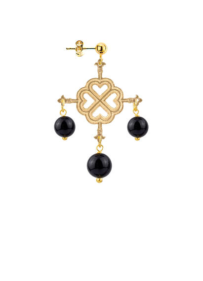 Orecchino singolo in ottone galvanizzato oro e pietre naturali. Lunghezza 5 cm. Made in Italy