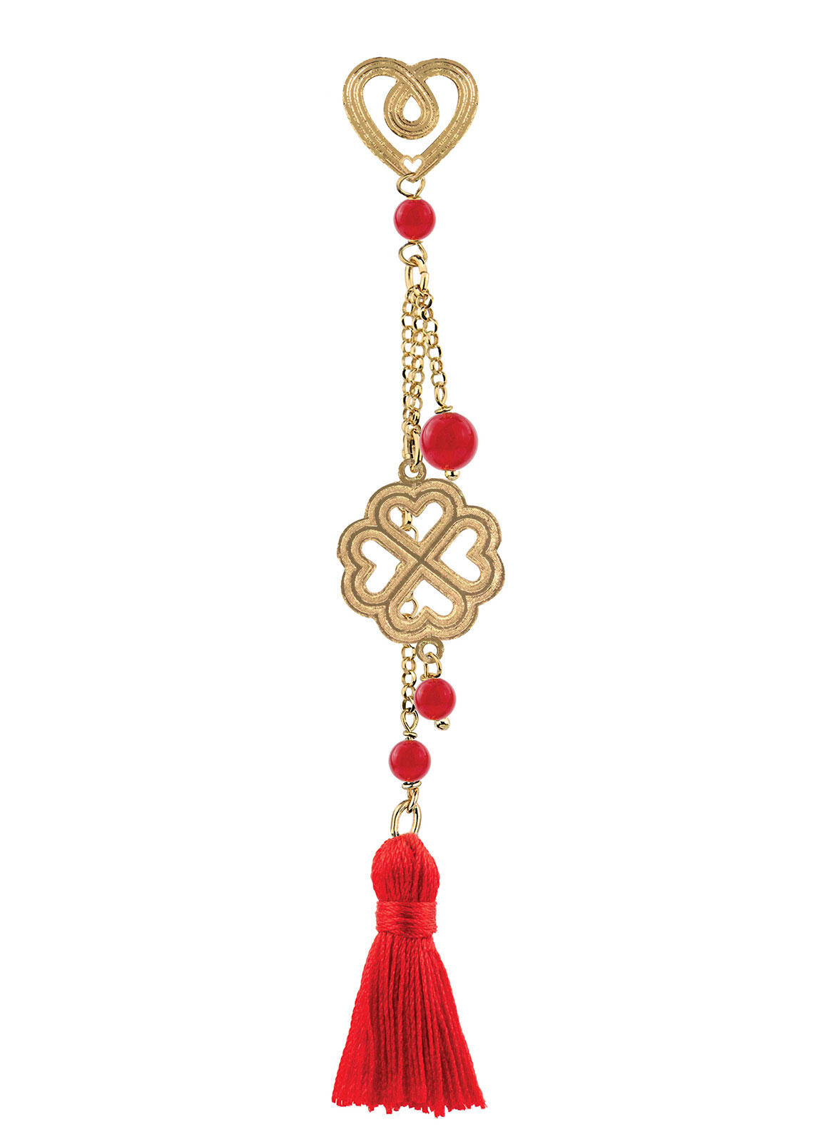 Orecchino Quadrifoglio Ciuffo Lungo Rosso