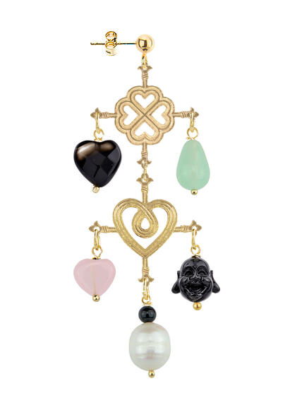 Orecchino singolo in ottone galvanizzato oro e pietre naturali. Lunghezza 8,5 cm. Made in Italy