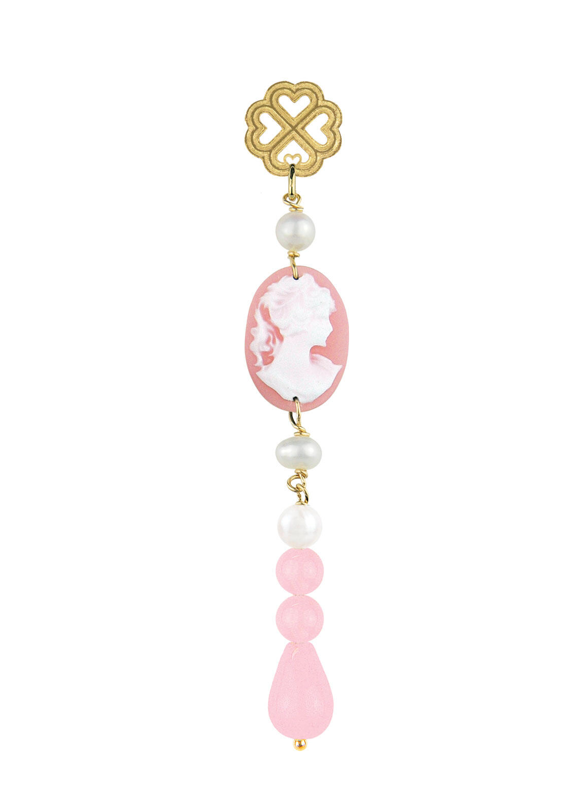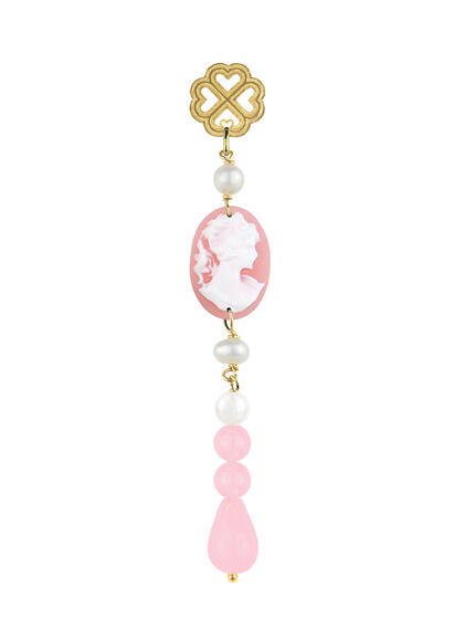 Orecchino Quadrifoglio E Cammeo Rosa