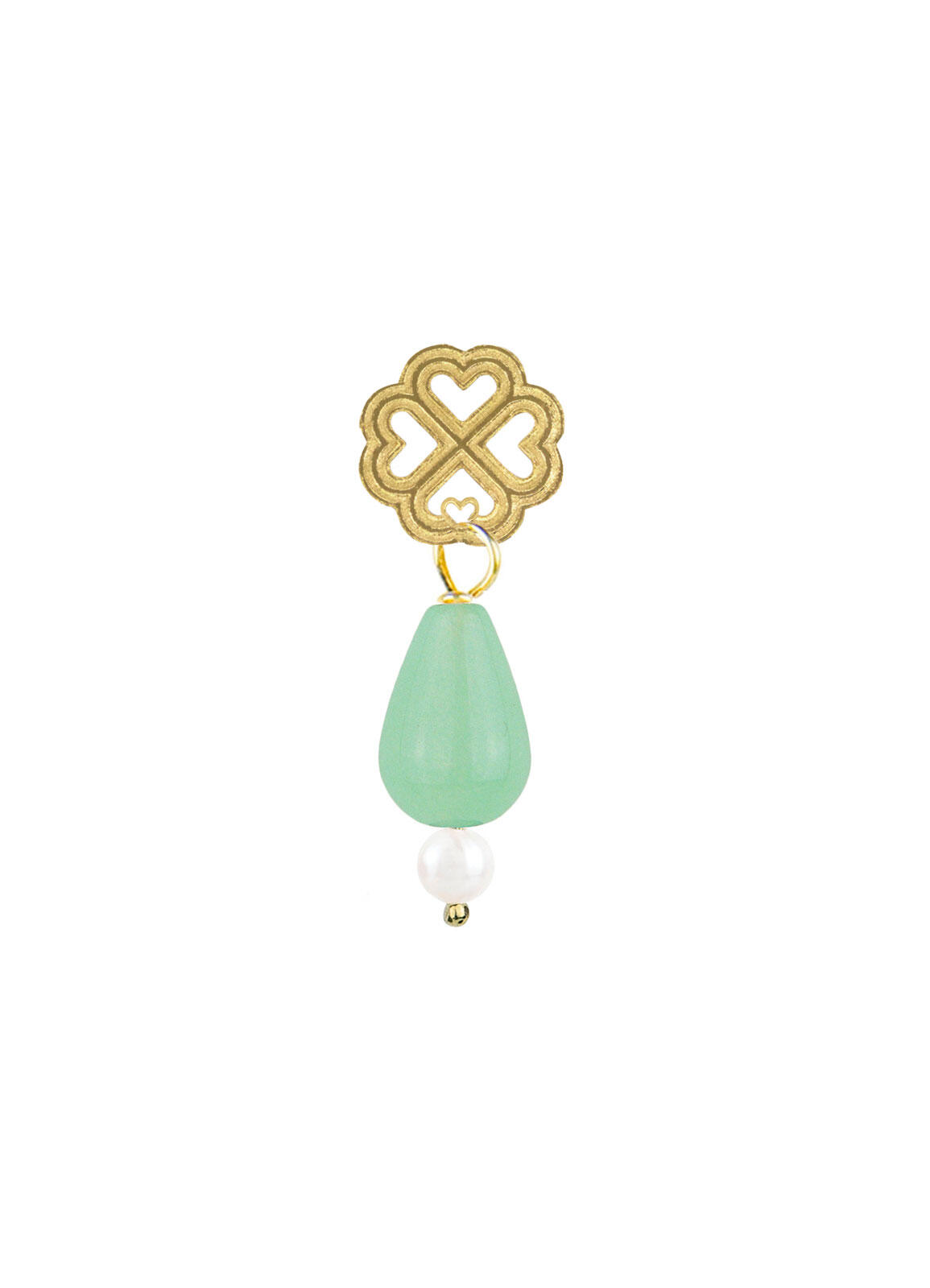 Orecchino singolo in ottone galvanizzato oro e pietre naturali. Lunghezza 3 cm. Made in Italy