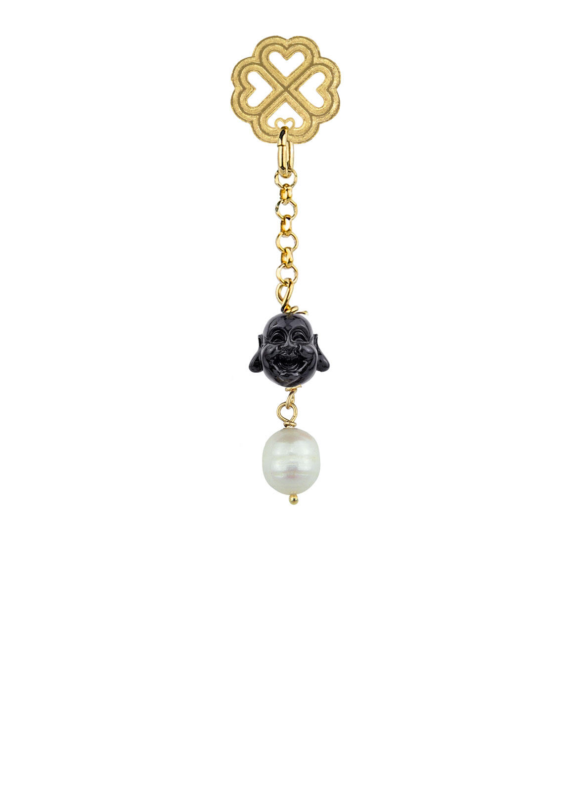 Orecchino Quadrifoglio Lungo Buddha Nero Perla