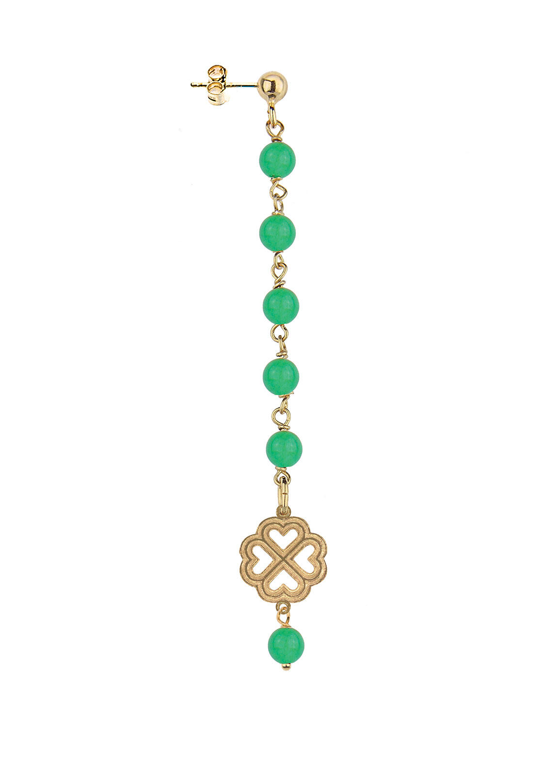 Orecchino singolo in ottone galvanizzato oro e pietre naturali. Lunghezza 8 cm. Made in Italy