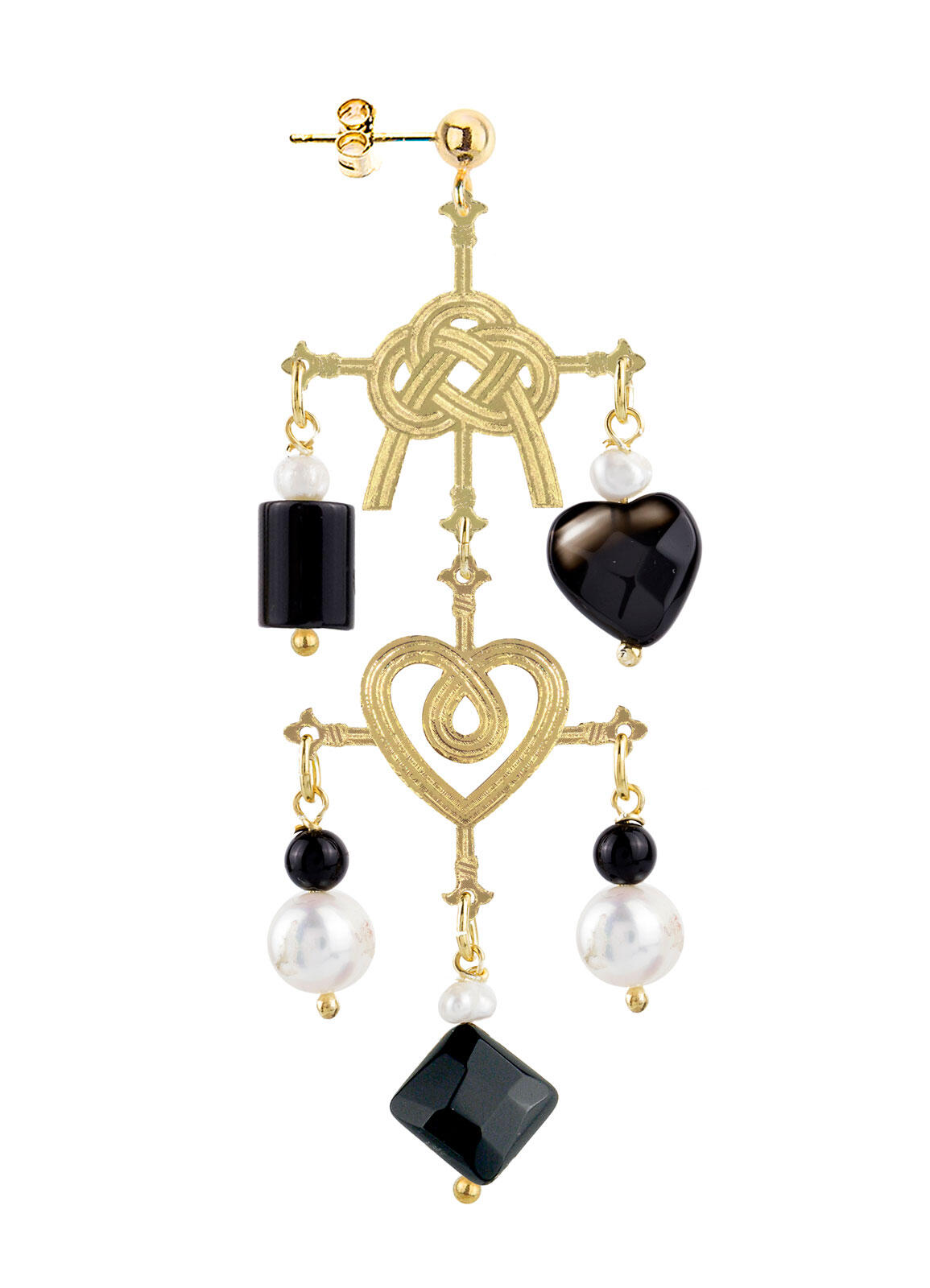 Orecchino singolo in ottone galvanizzato oro e pietre naturali. Lunghezza 8,5 cm. Made in Italy