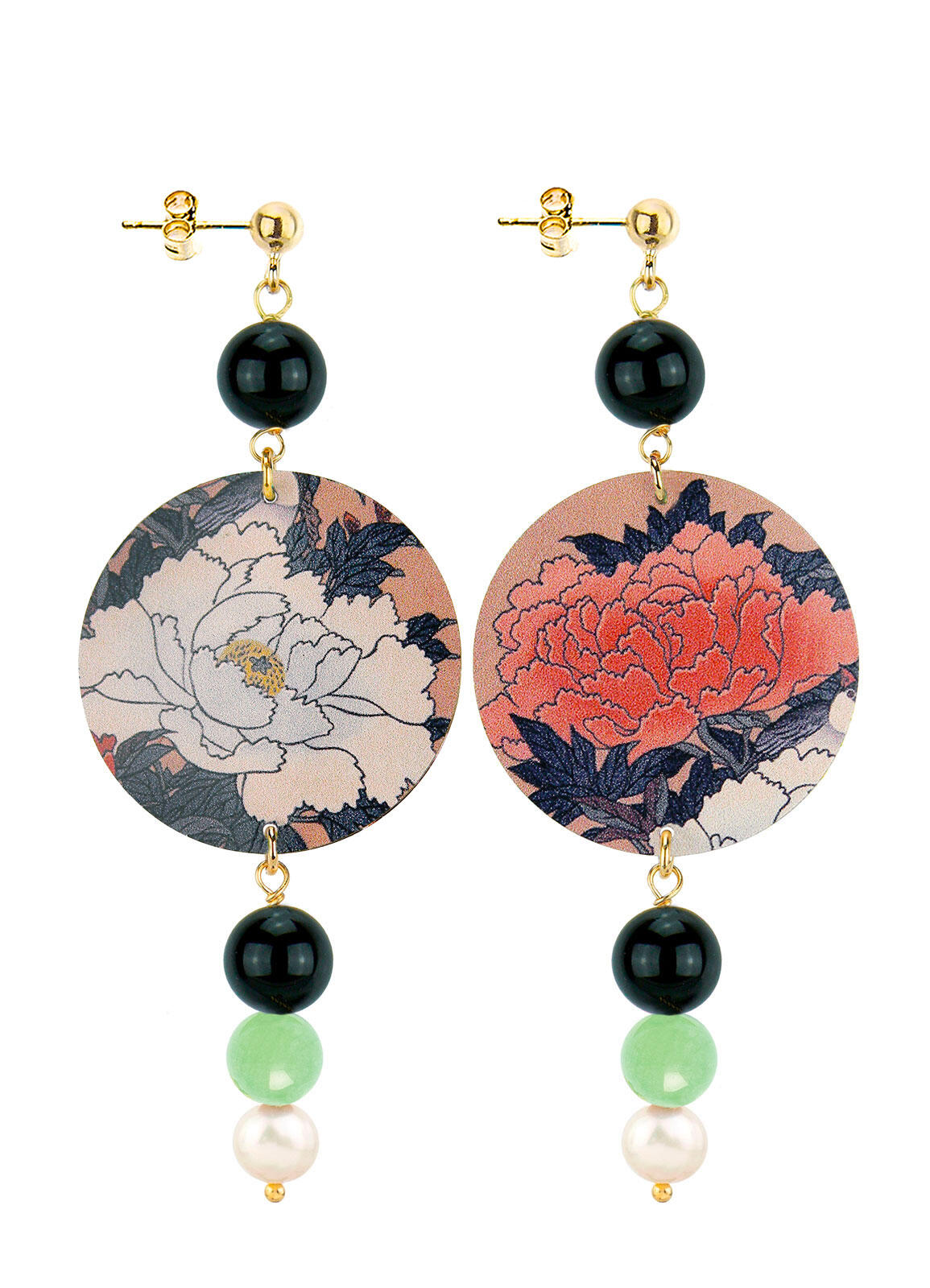 Orecchini Fiore Bianco E Rosso Nero Verde Giada Perla