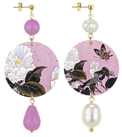 Orecchini Fiore E Farfalla Classico Viola Chiaro E Perla