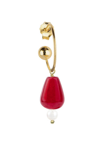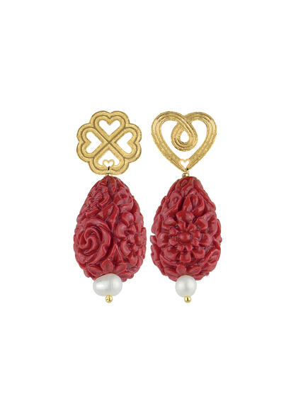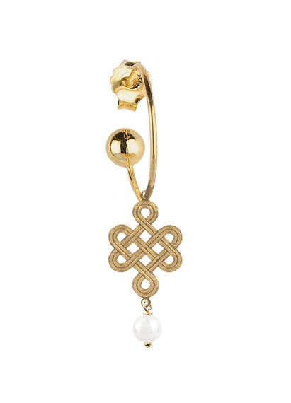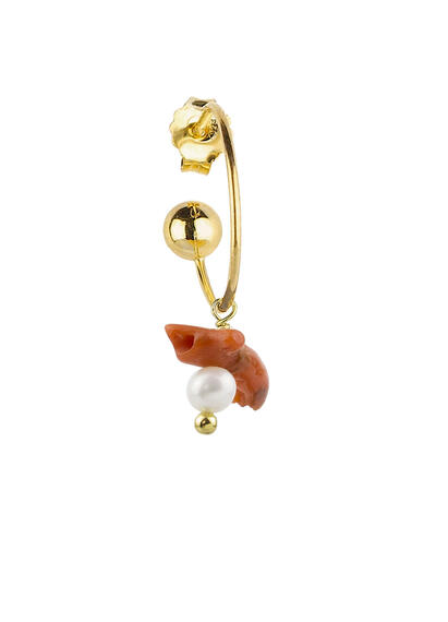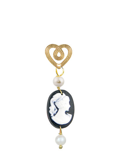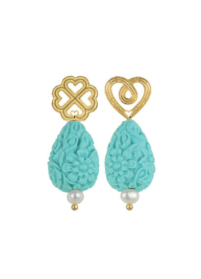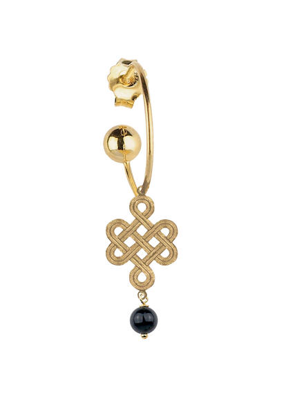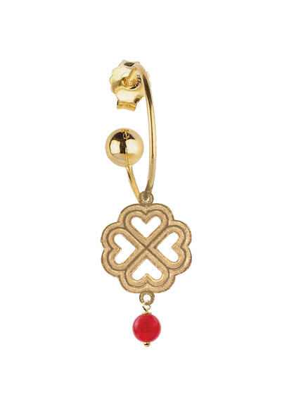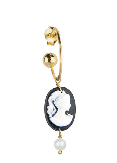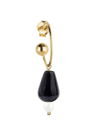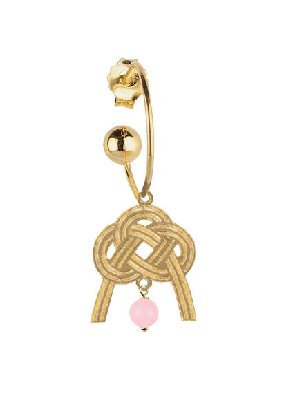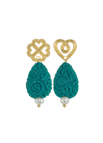 Orecchini composti da una capsula piatta stampata. Elementi in ottone galvanizzato oro e pietre naturali. Lunghezza 9 cm. Diametro 3,5 cm. Chiusura piattino e farfallina. Made in Italy