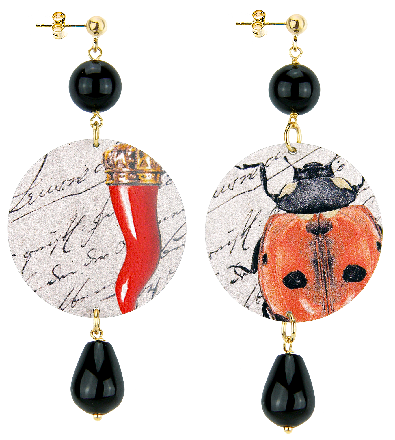 Orecchini Corno E Coccinella Classico Nero