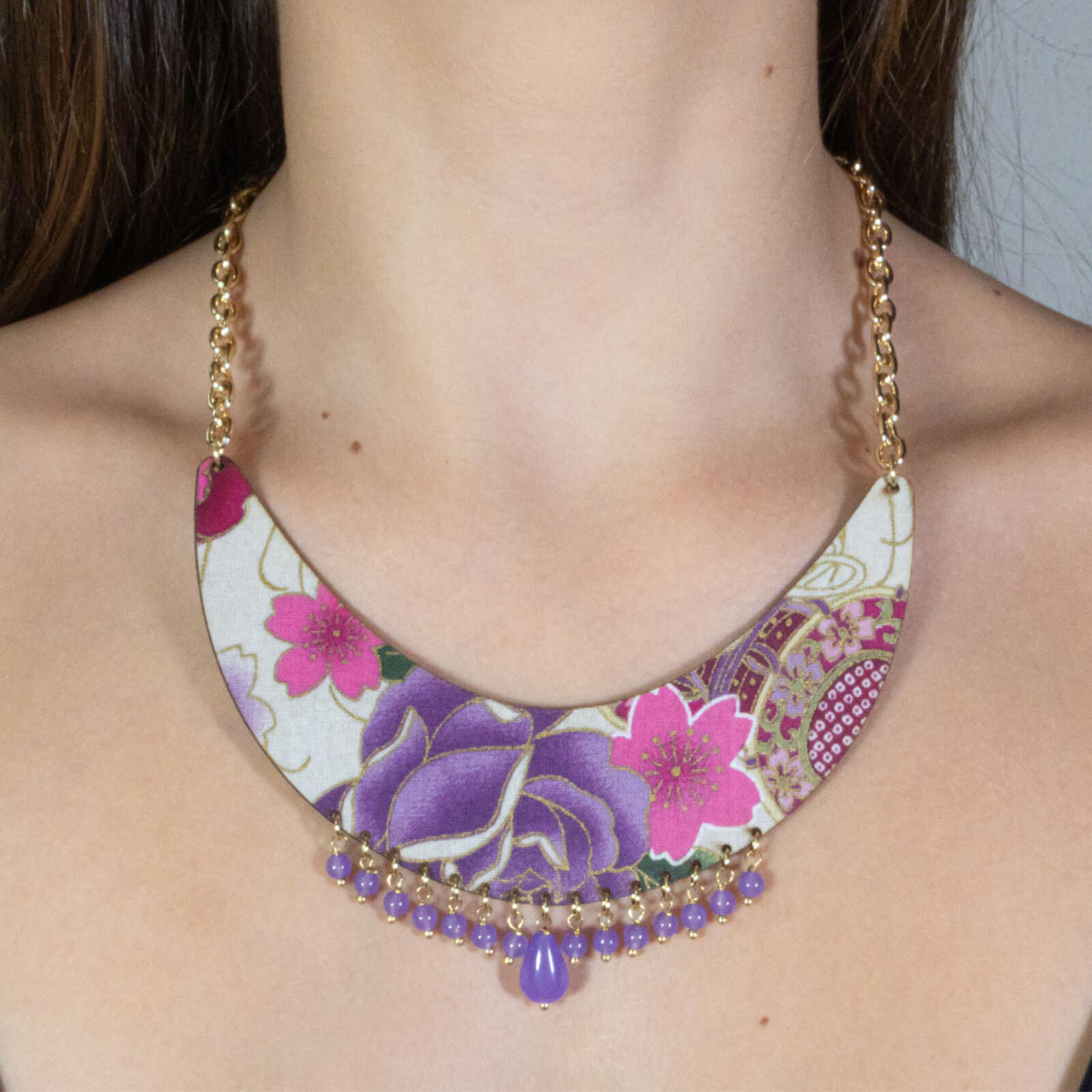 Originalità e tradizione: una collezione icona, come Kimono di Lebole Maison, nasce sempre da idee brillanti. Per la realizzazione dei suoi orecchini, la Collezione Kimono utilizza antichi tessuti di kimono giapponesi, stesi con un procedimento particolare su un’anima di legno: per questo motivo i gioielli della Maison sono unici e irripetibili, con colori e disegni sempre diversi.