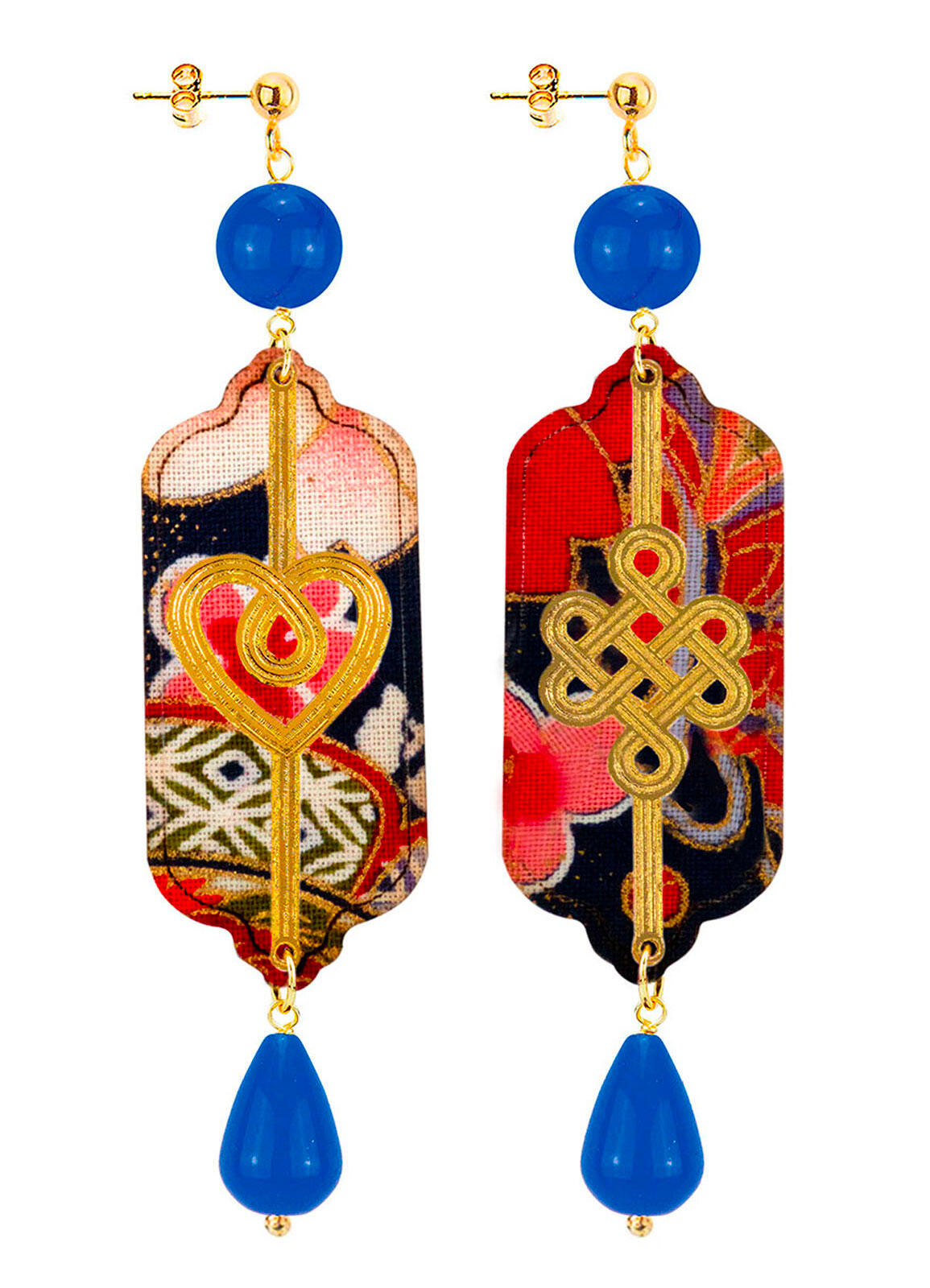 I quattro musubi danno vita a due coppie di orecchini: Hanamusubi con Katabami, Musubikiri con il nodo dell’Infinito. I materiali restano fedeli alla tradizione Lebole: seta da antichi kimono giapponesi, tessuti a righe o pois, ottone galvanizzato oro e pietre naturali.