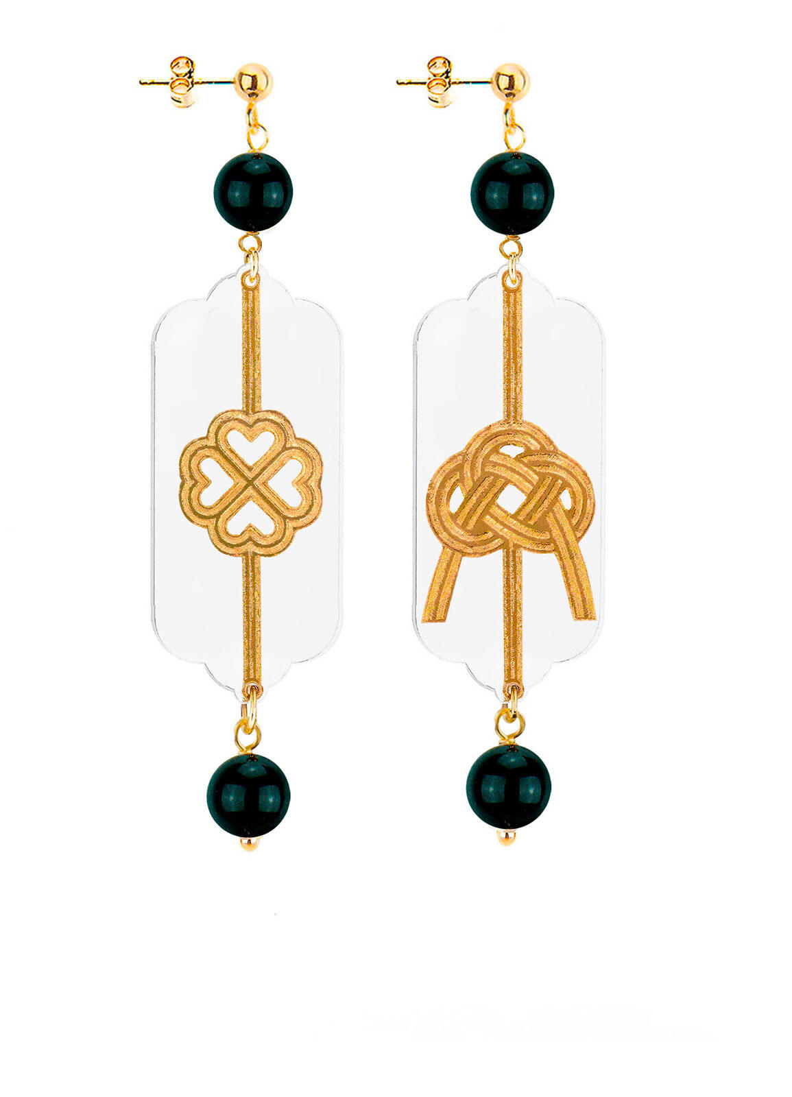 Orecchini Quadrifoglio E Nodo Plexi Traspa Mini Nero