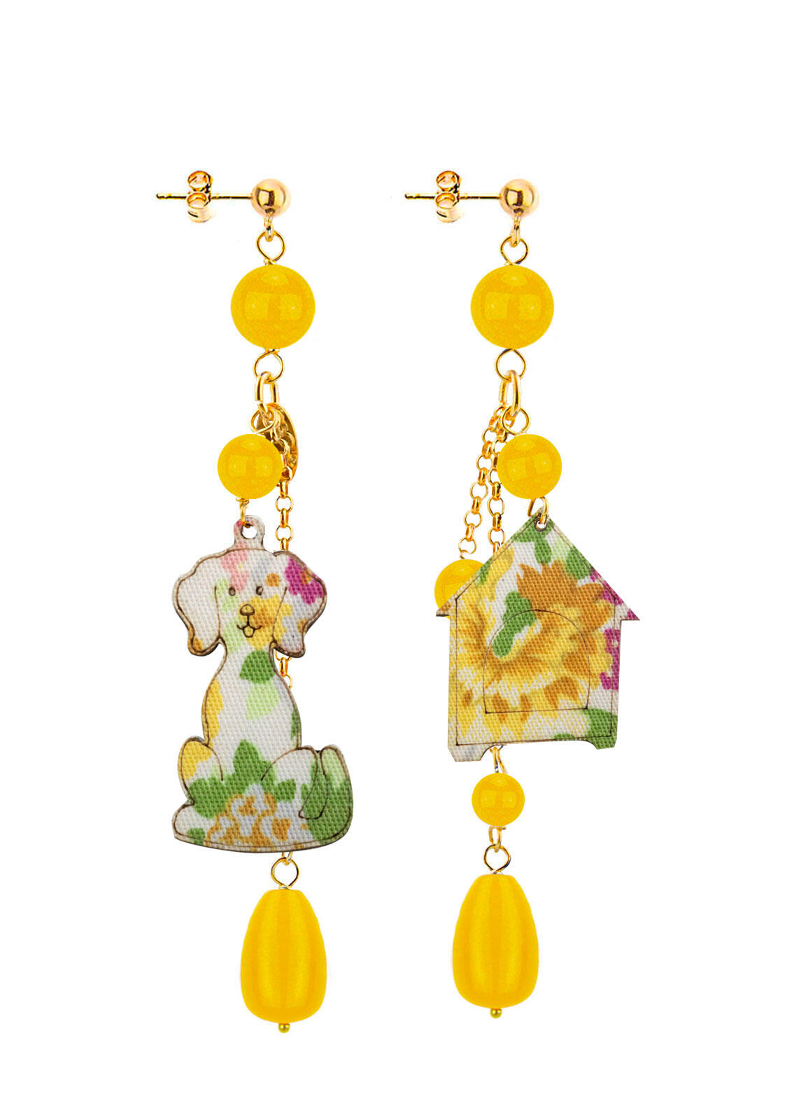 Orecchini Cane E Cuccia Ciuffo Corto Giallo