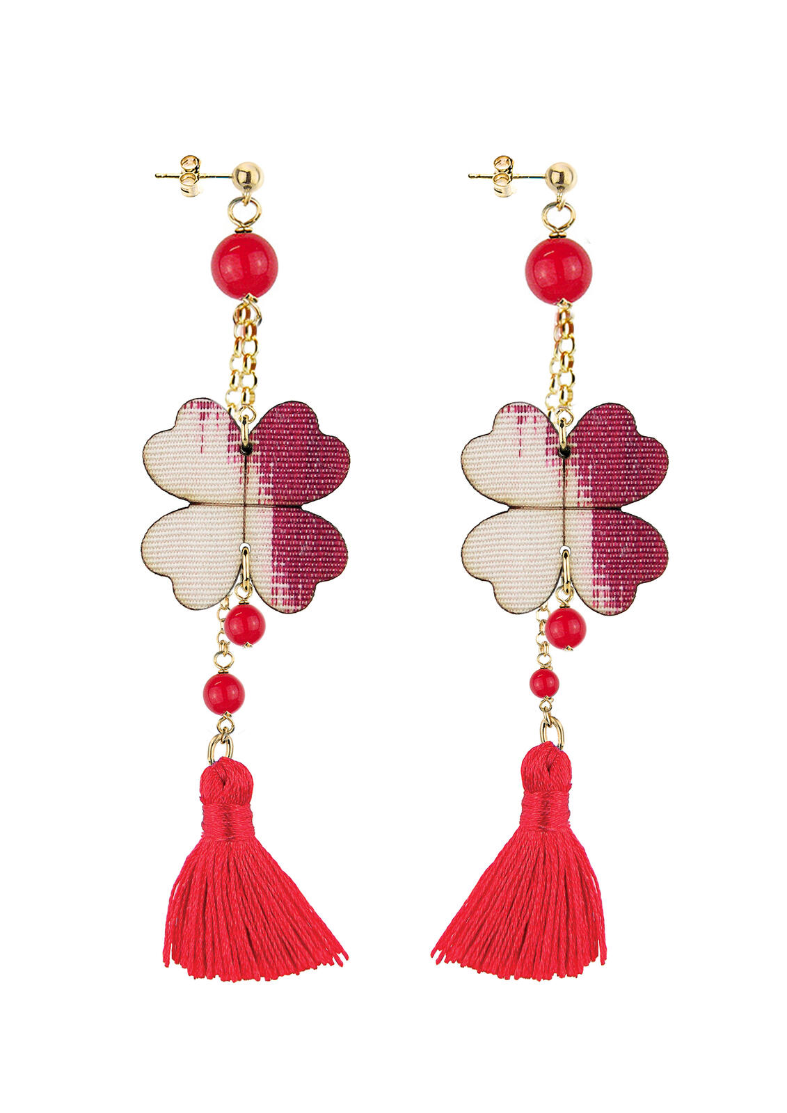 Orecchini Ciuffo Quadrifoglio Piccolo Nappa Rubino