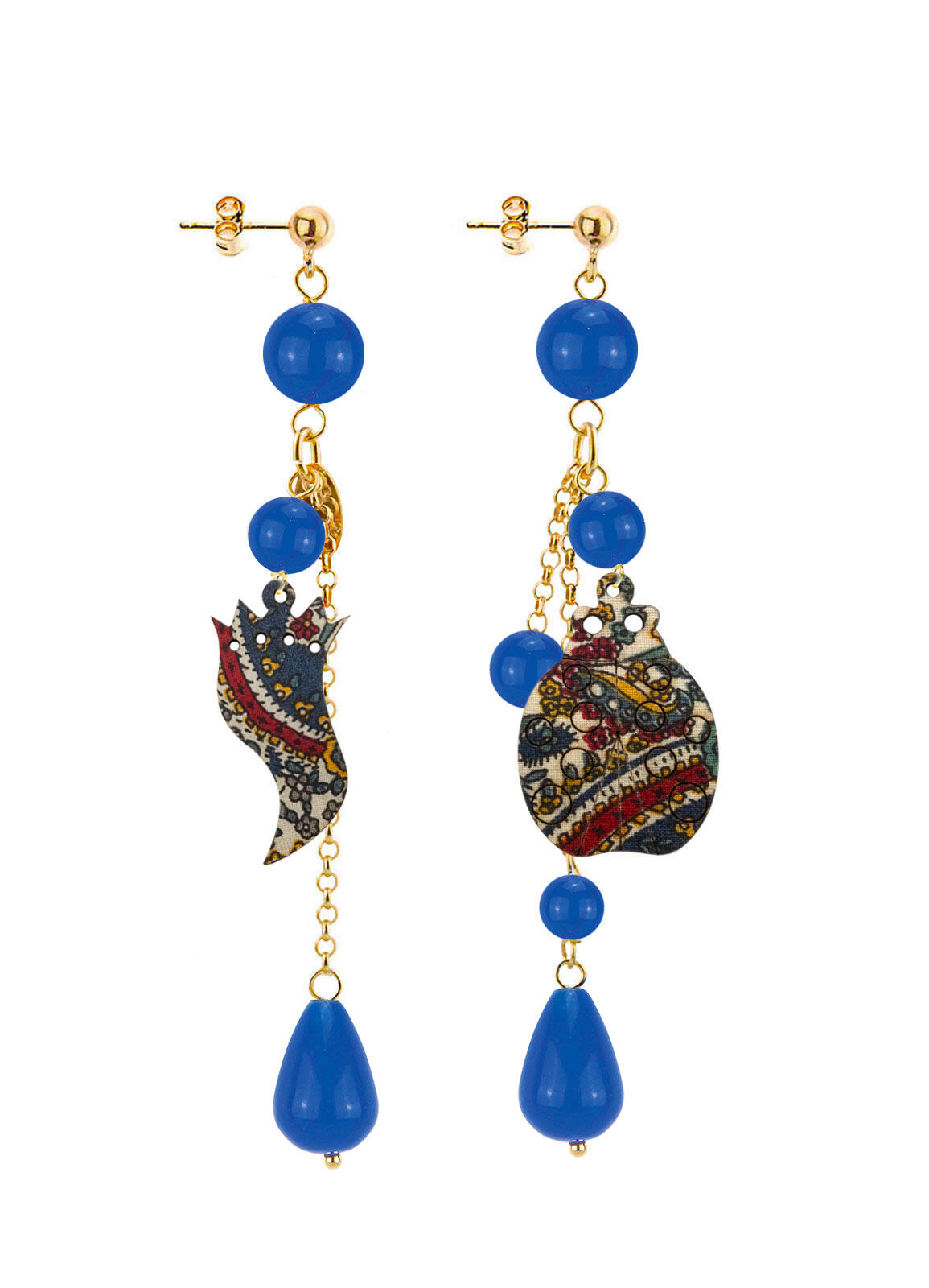 Orecchini Corno E Coccinella Ciuffo Corto Blu