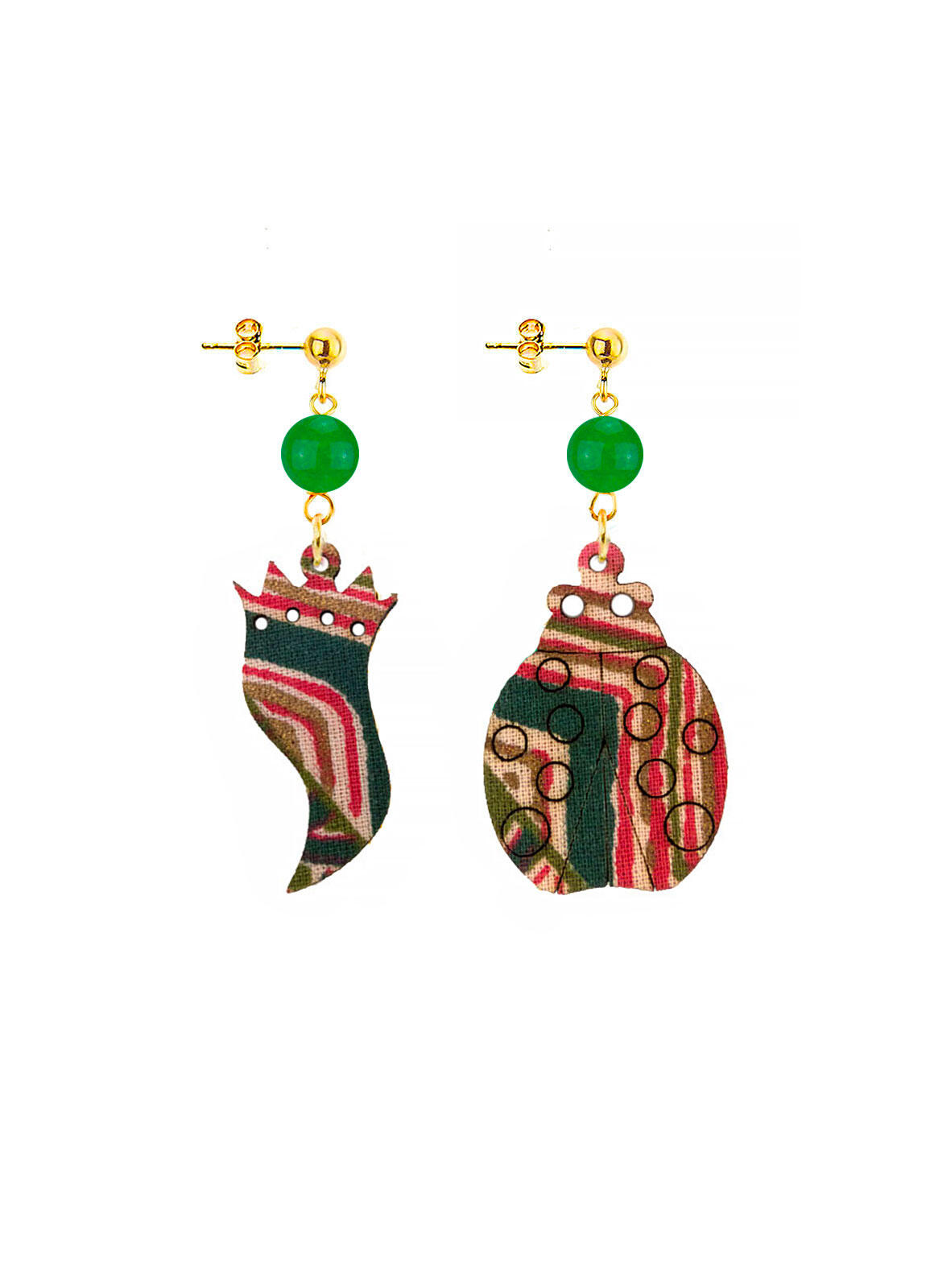 Orecchini in ottone galvanizzato oro e tessuti di antichi kimono. Lunghezza 5 cm. Chiusura perno e farfalla. Made in Italy
