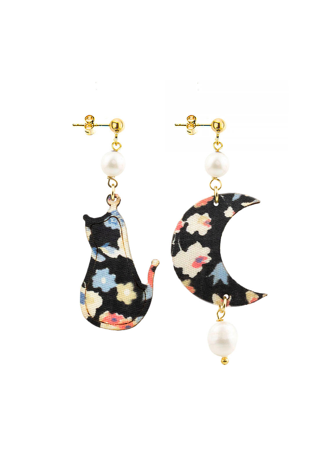 Orecchini Gatto E Luna Mini Perla