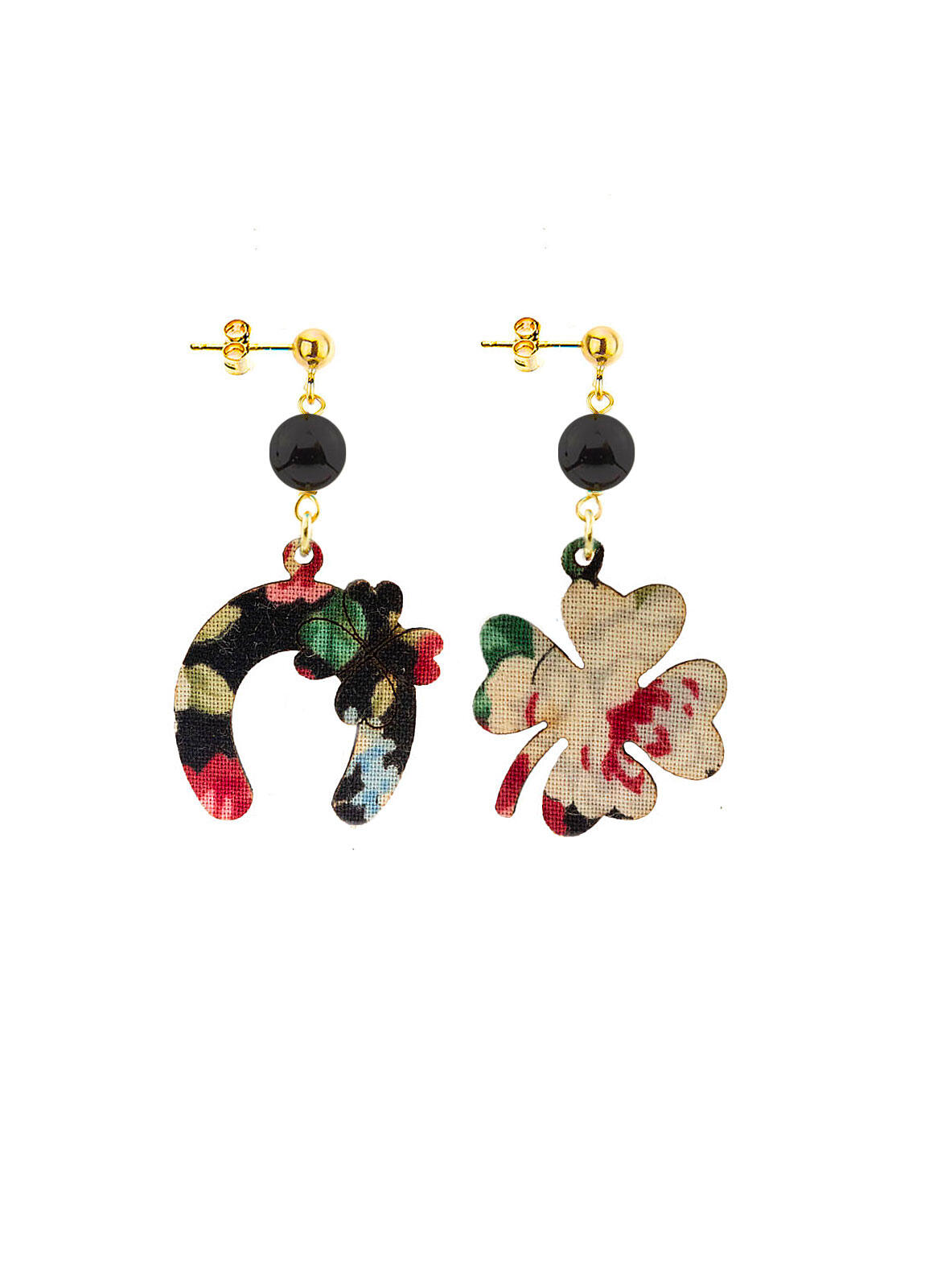 Orecchini Quadrifoglio E Ferro Di Cavallo Mini Nero