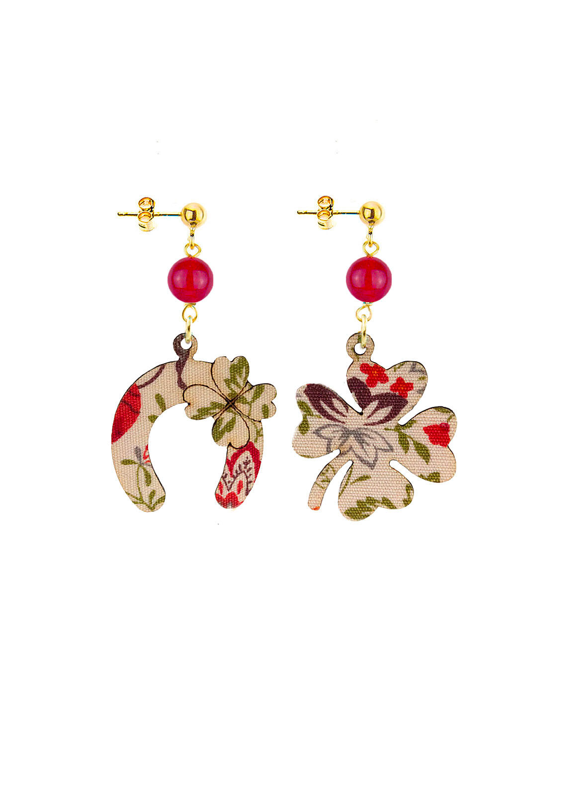 Orecchini Quadrifoglio E Ferro Di Cavallo Mini Rubino