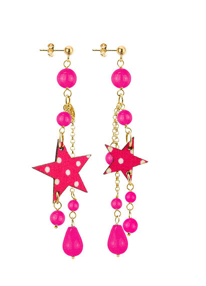 Orecchini Stella Pois Ciuffo Corto Fucsia
